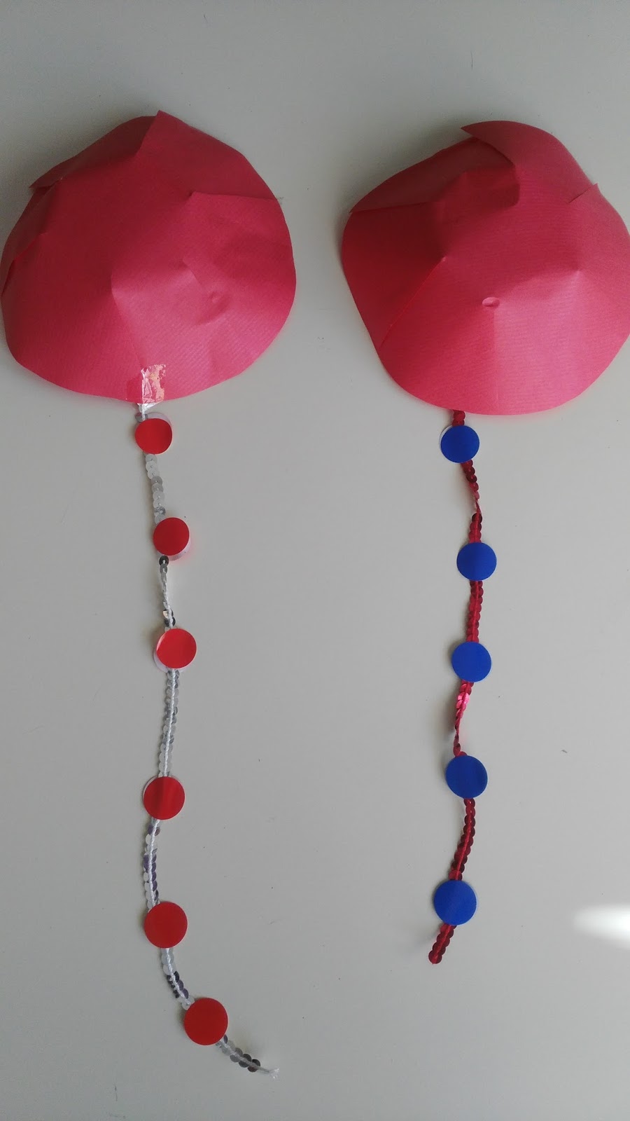 Los chicos, llevaron estos gorros falleros. Los recortaron y pegaron círculos de gomets sobre la tira que sale del mismo. Por otro lado, pintado, recortado y barnizado de esta manta morellana.
